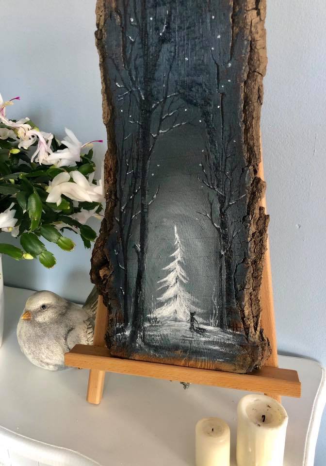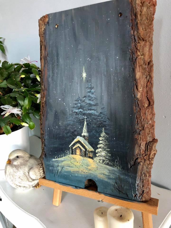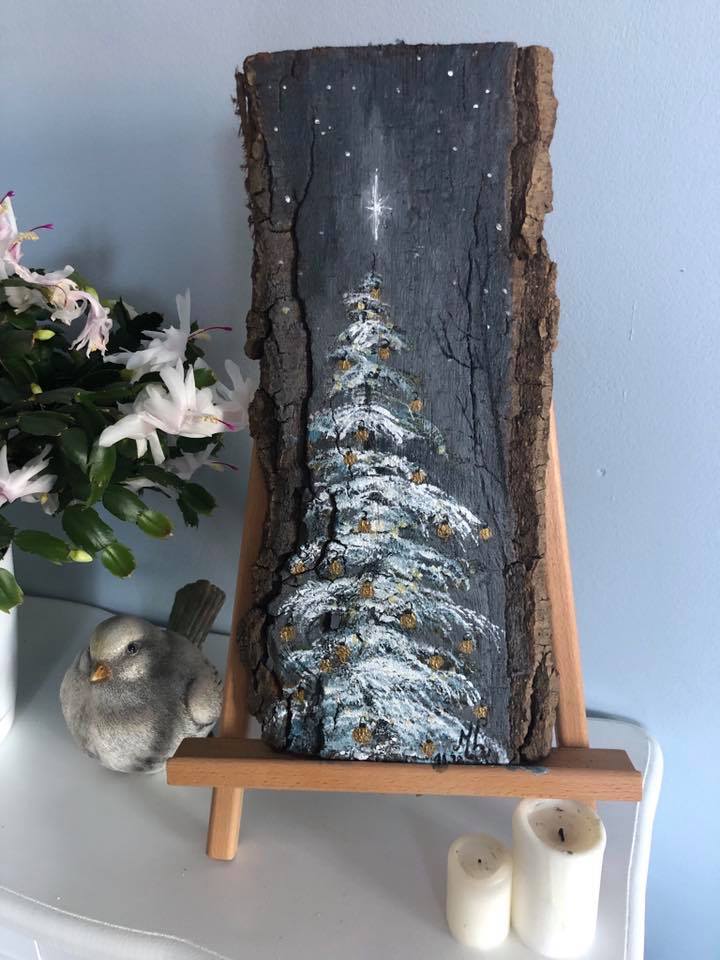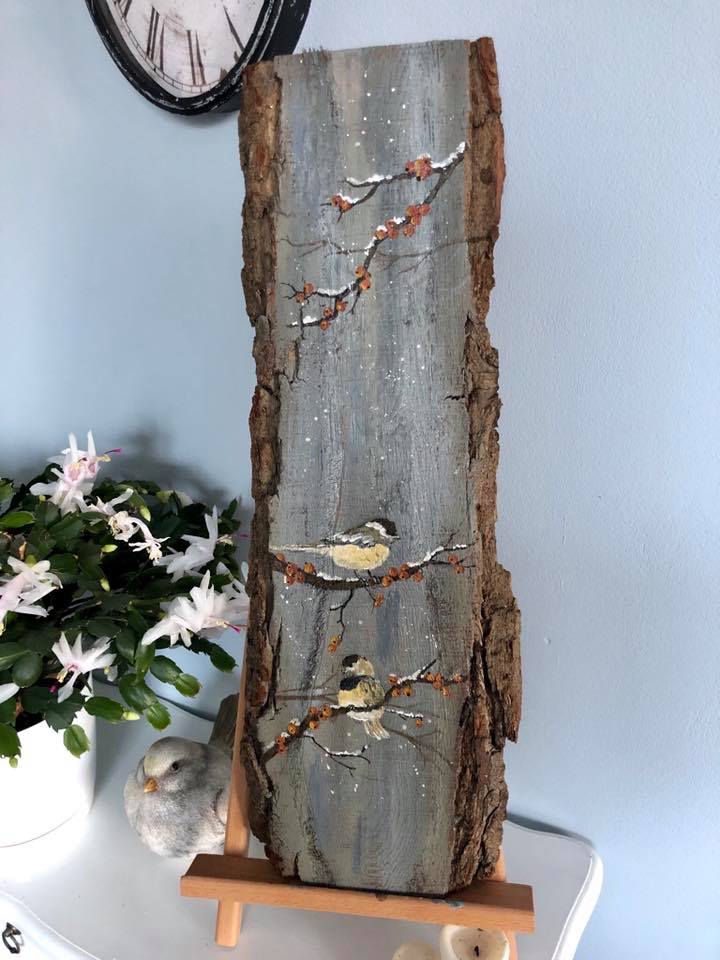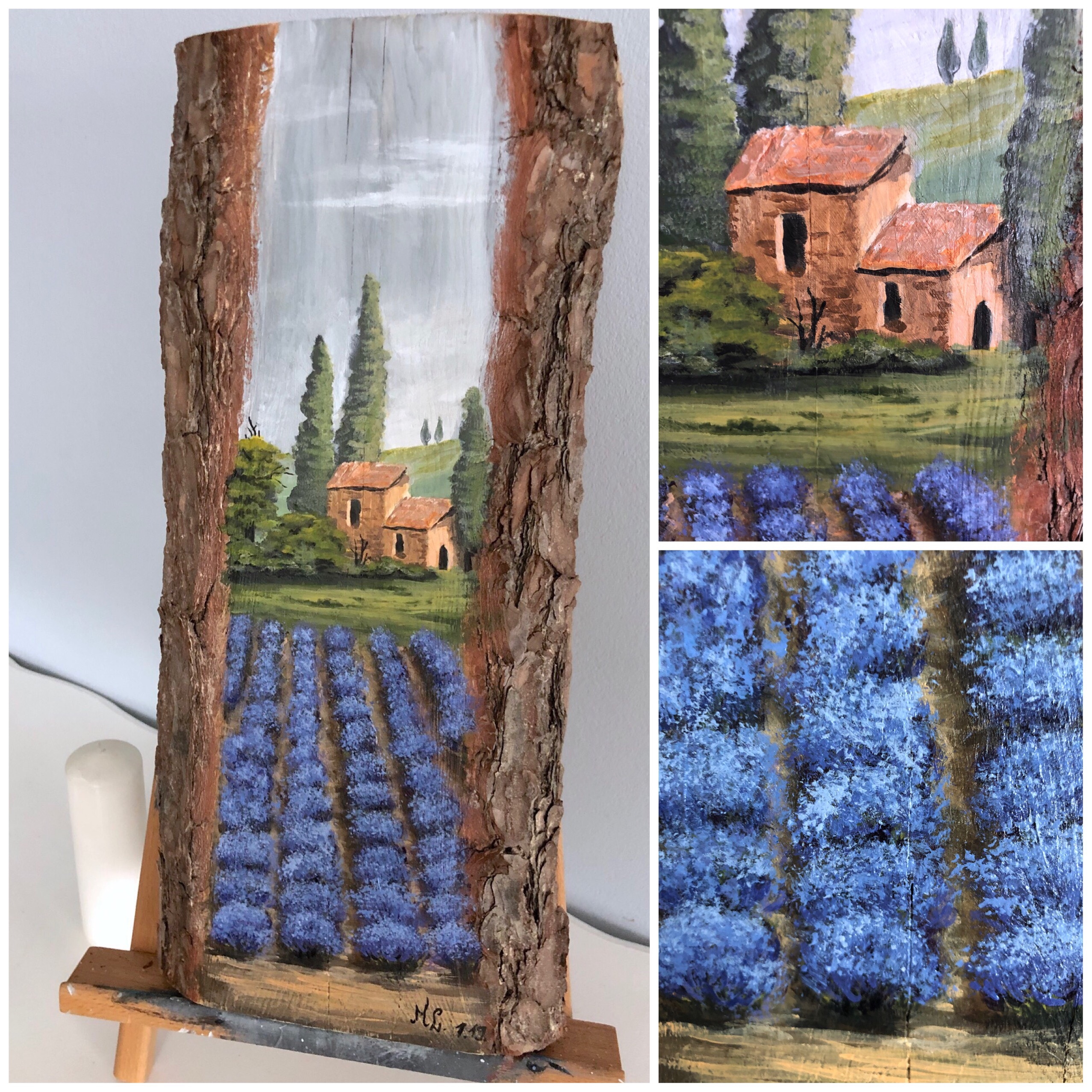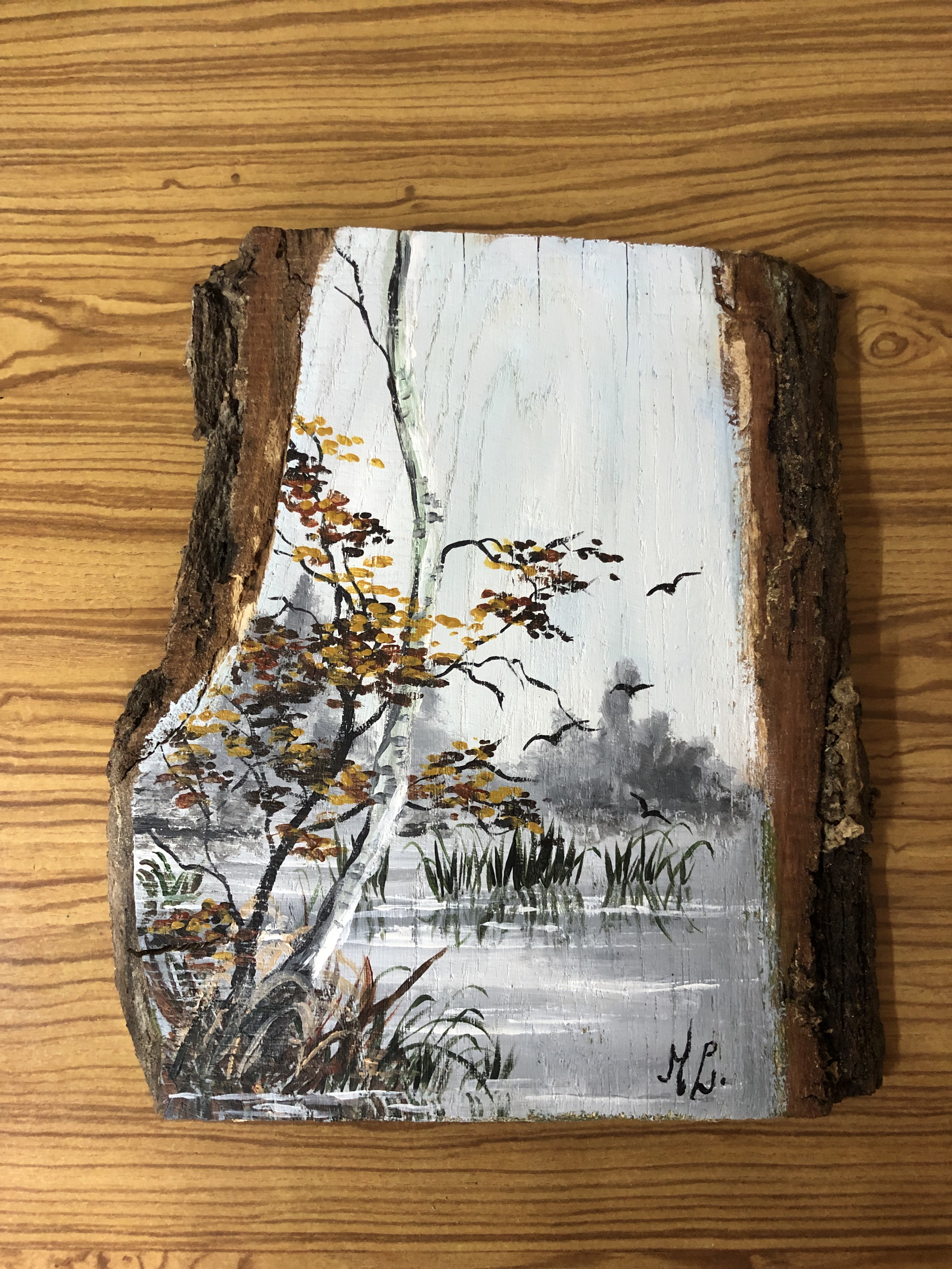 Obrazy, które tu widzisz wykonuję farbami akrylowymi na naturalnych deskach najczęściej dębowych z korą lub bez. Każda z nich jest inna, niepowtarzalna, ma inne słoje, inny zapach, inny kształt i fakturę. Największą przyjemność sprawia mi jednak odnawianie i konserwacja starych, wiekowych, porozbiórkowych desek, stanowiące świetne podobrazie.
