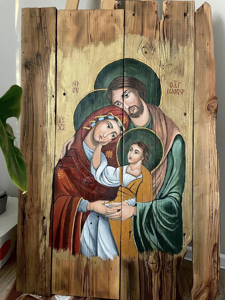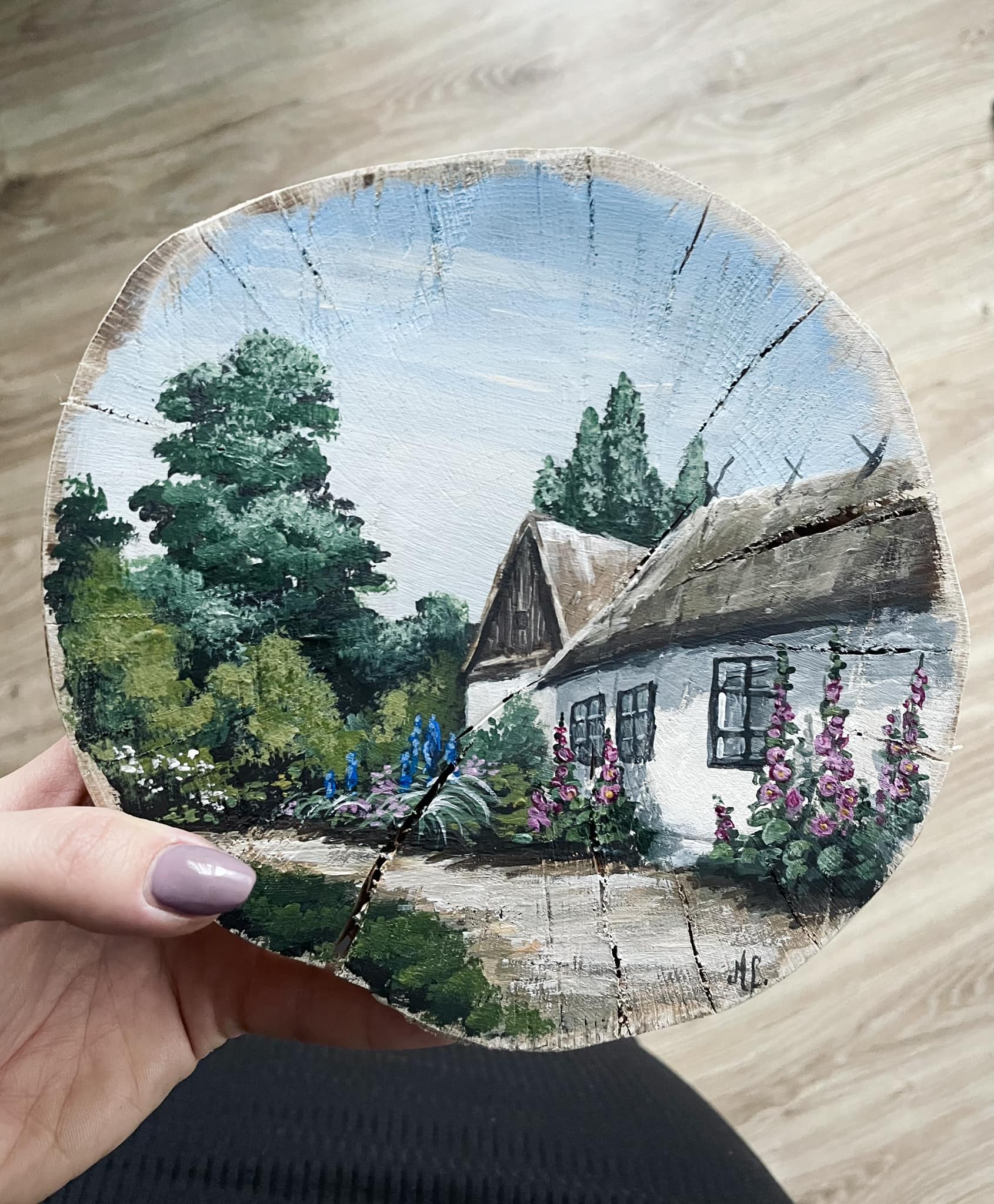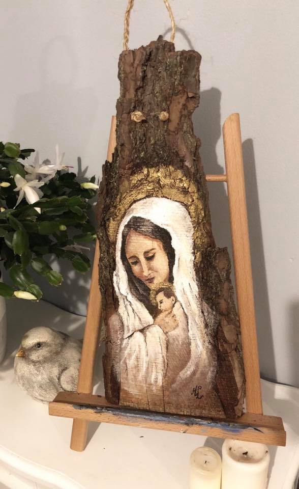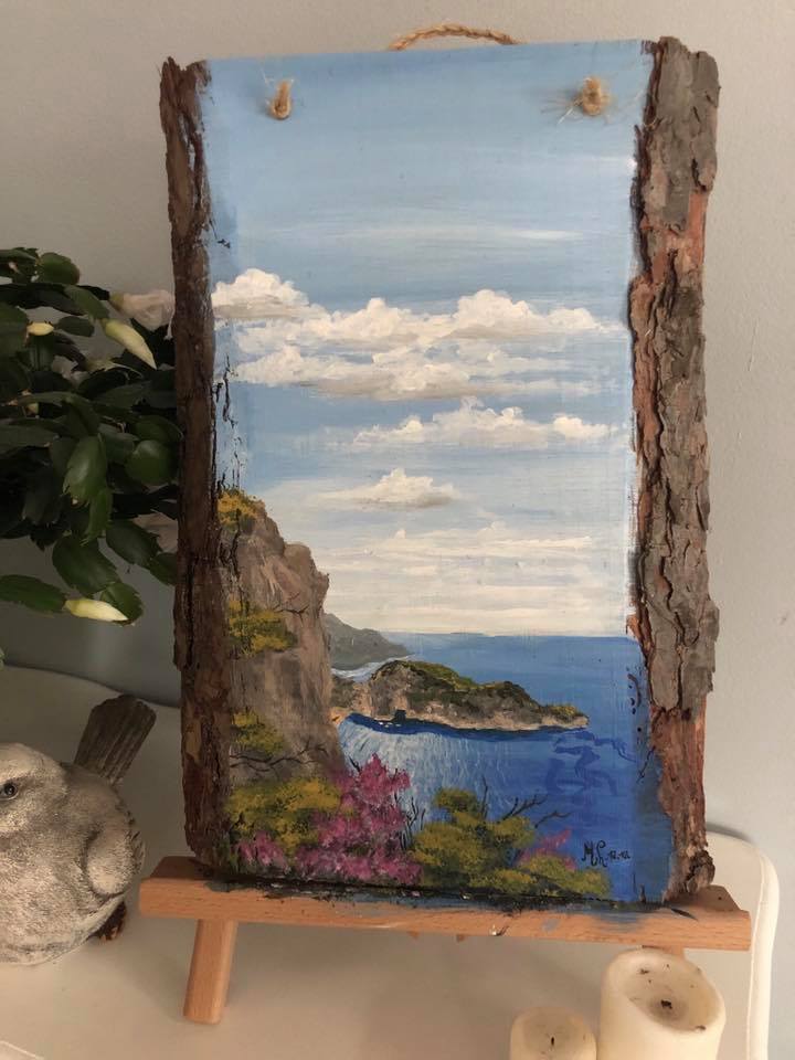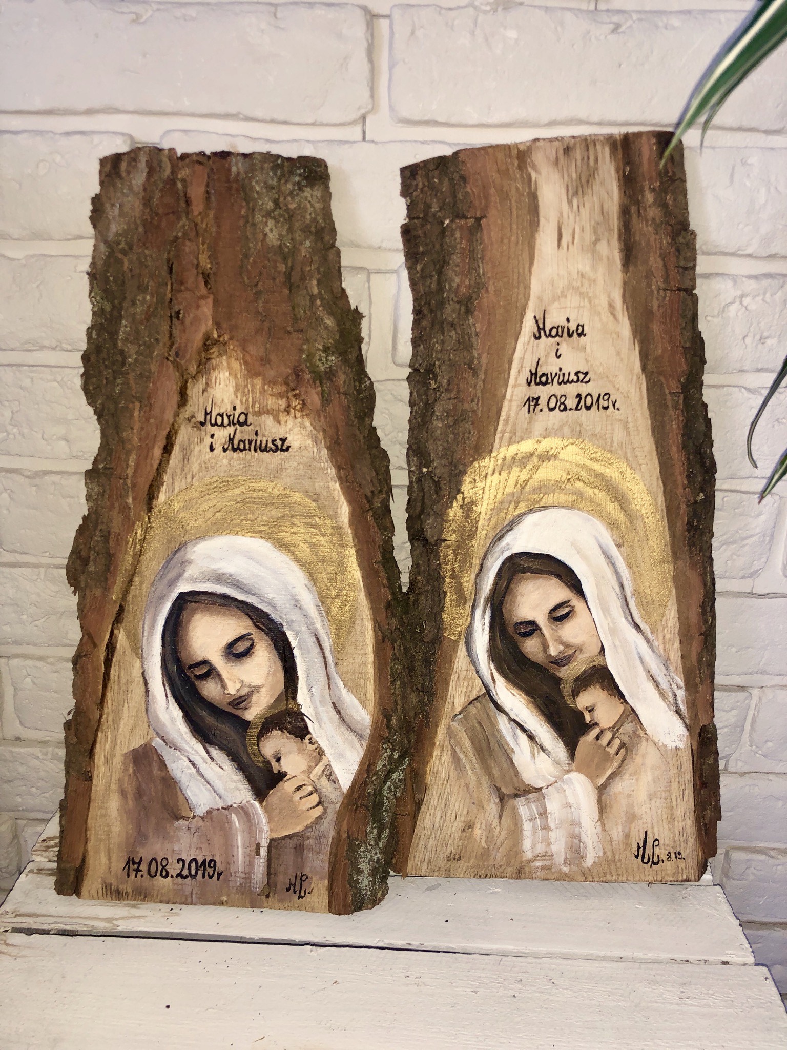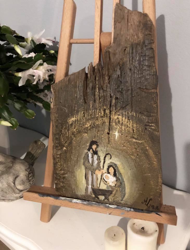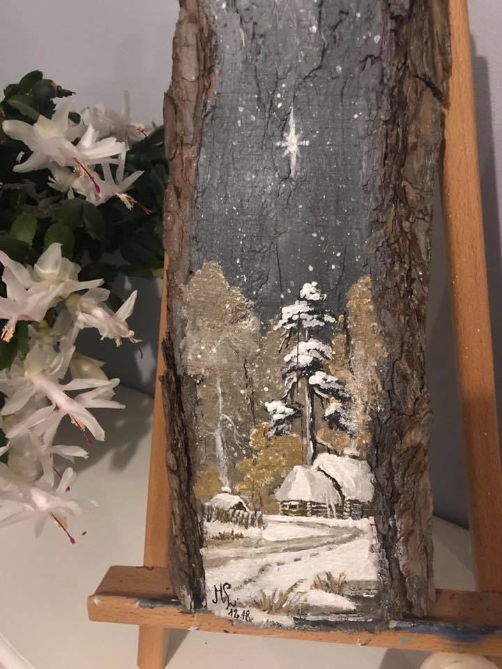 Obrazy, które tu widzisz wykonuję farbami akrylowymi na naturalnych deskach najczęściej dębowych z korą lub bez. Każda z nich jest inna, niepowtarzalna, ma inne słoje, inny zapach, inny kształt i fakturę. Największą przyjemność sprawia mi jednak odnawianie i konserwacja starych, wiekowych, porozbiórkowych desek, stanowiące świetne podobrazie.