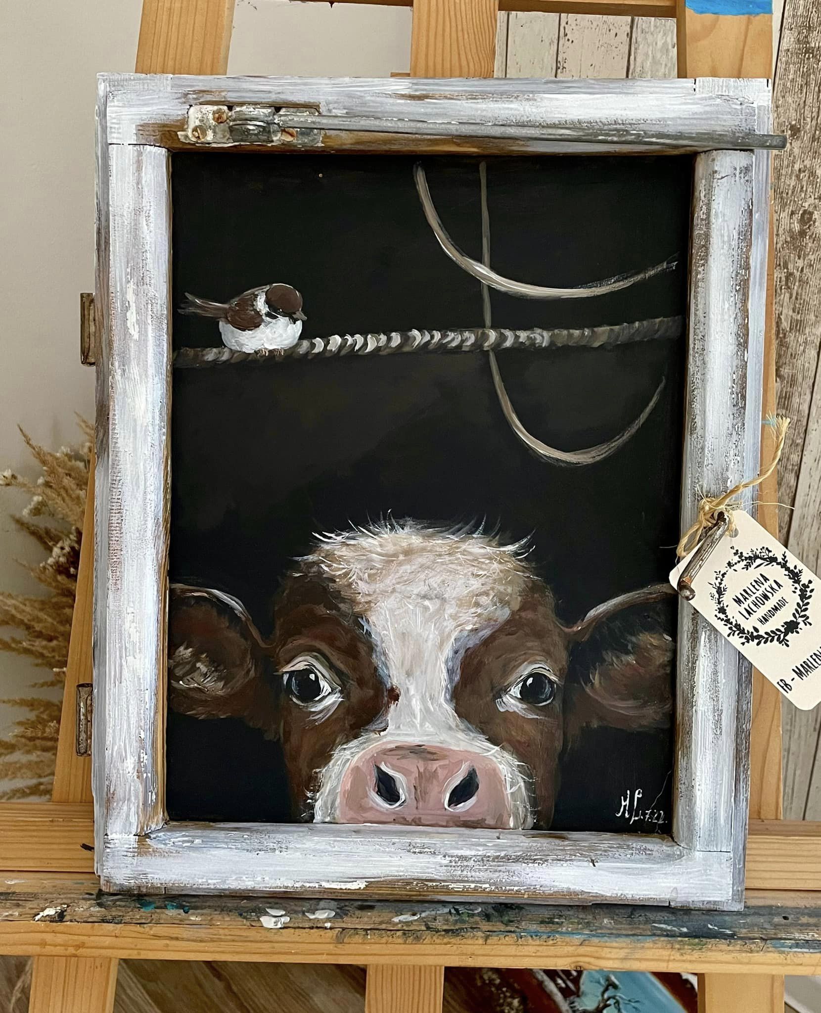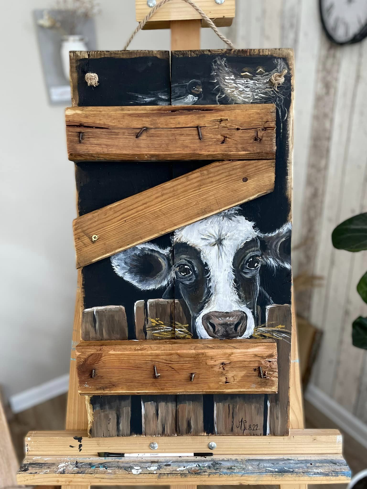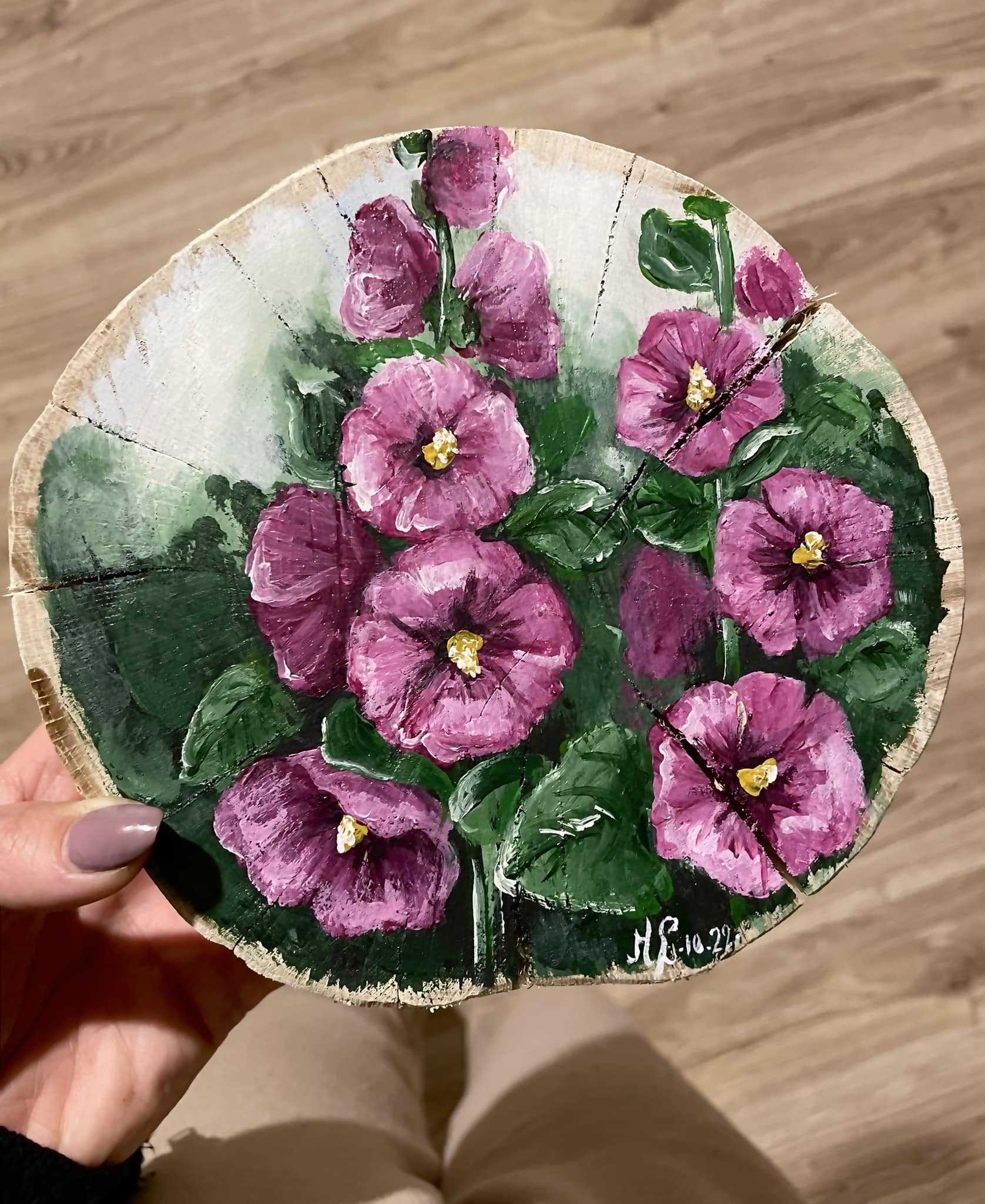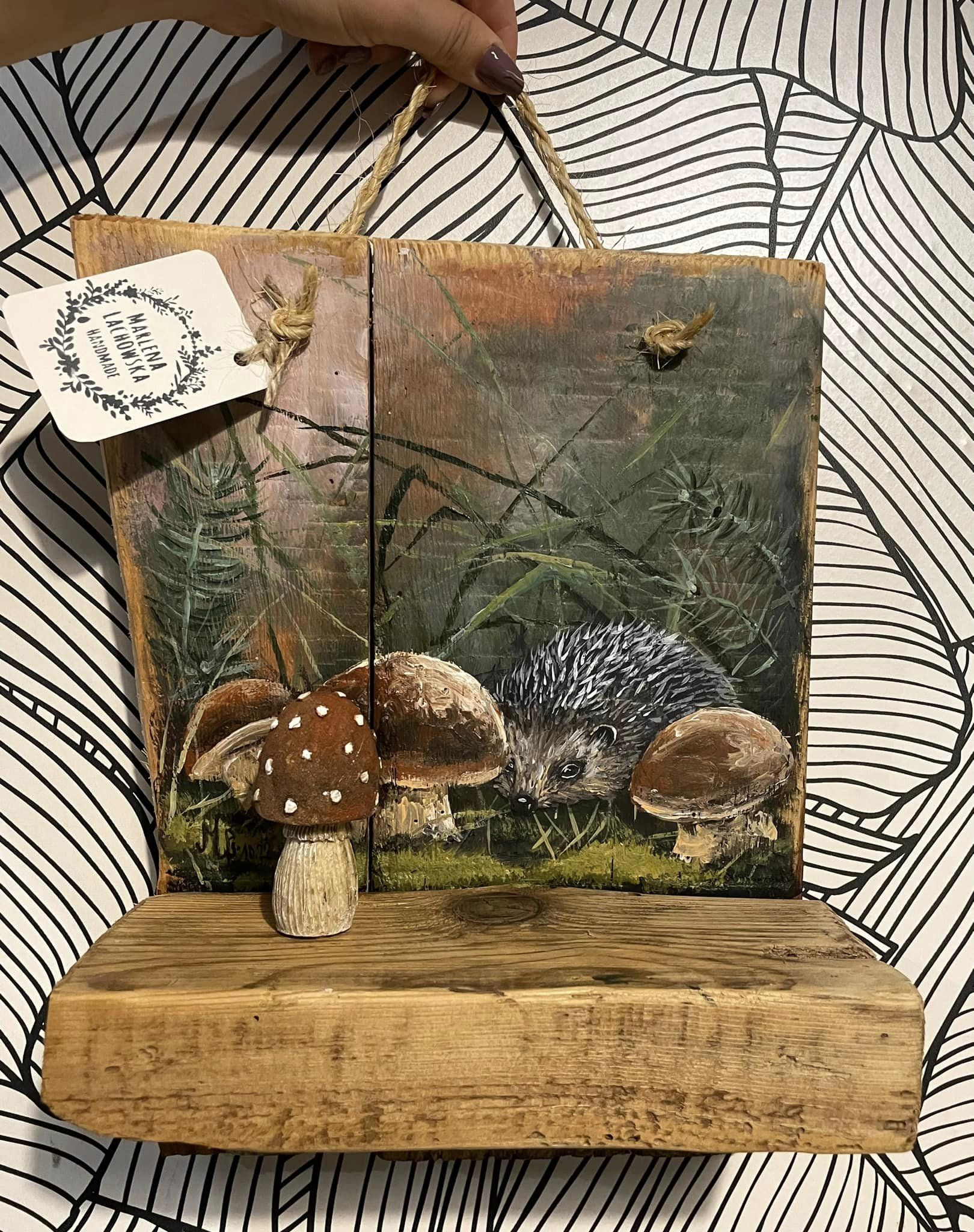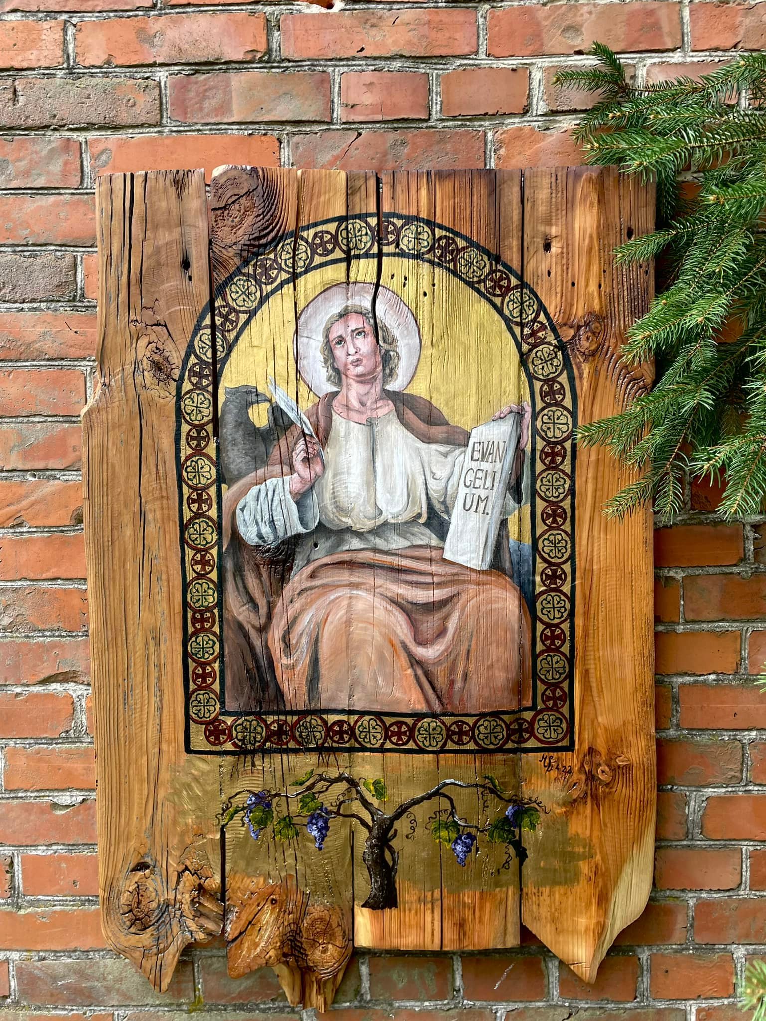 Obrazy, które tu widzisz wykonuję farbami akrylowymi na naturalnych deskach najczęściej dębowych z korą lub bez. Każda z nich jest inna, niepowtarzalna, ma inne słoje, inny zapach, inny kształt i fakturę. Największą przyjemność sprawia mi jednak odnawianie i konserwacja starych, wiekowych, porozbiórkowych desek, stanowiące świetne podobrazie.
