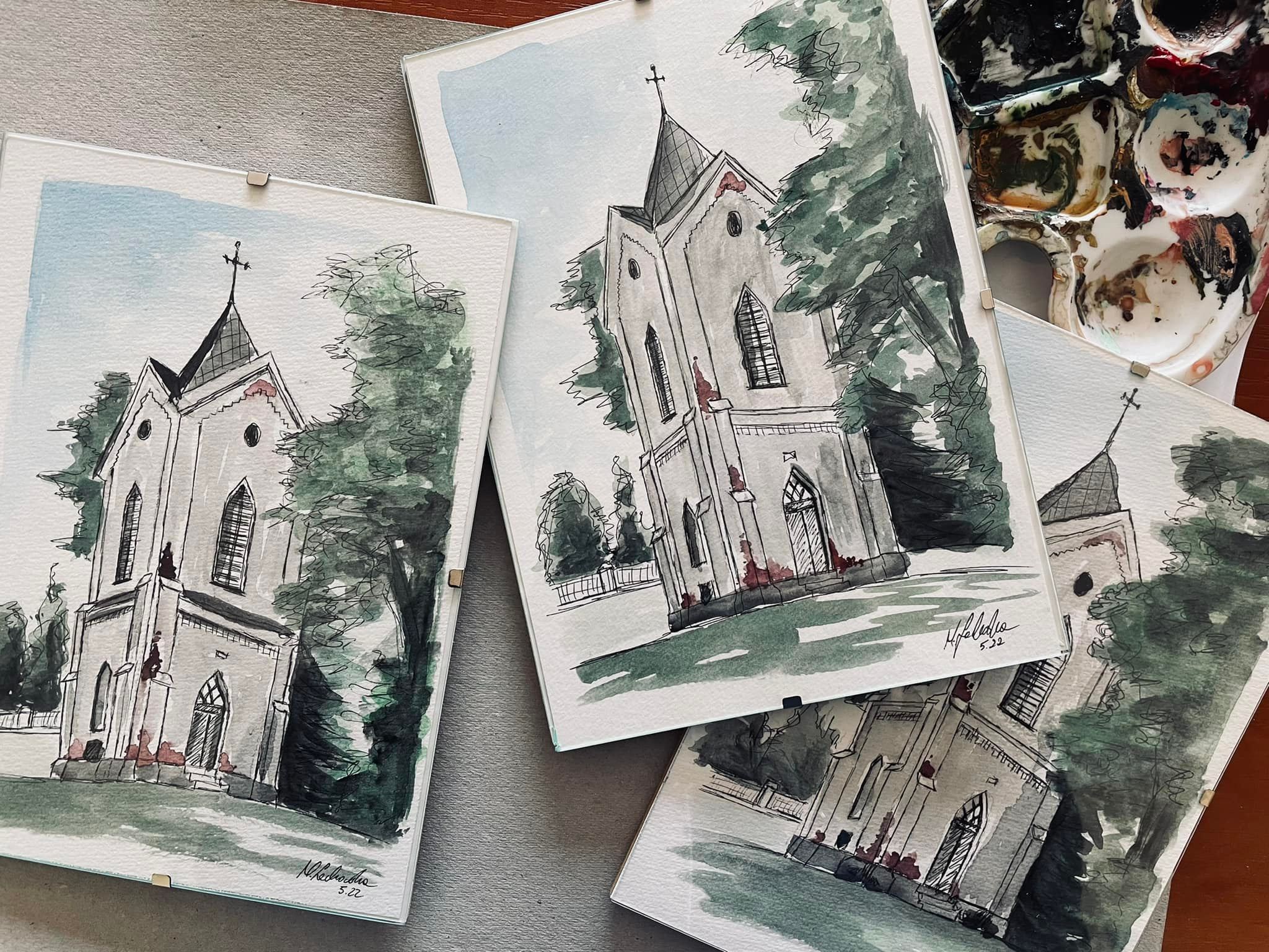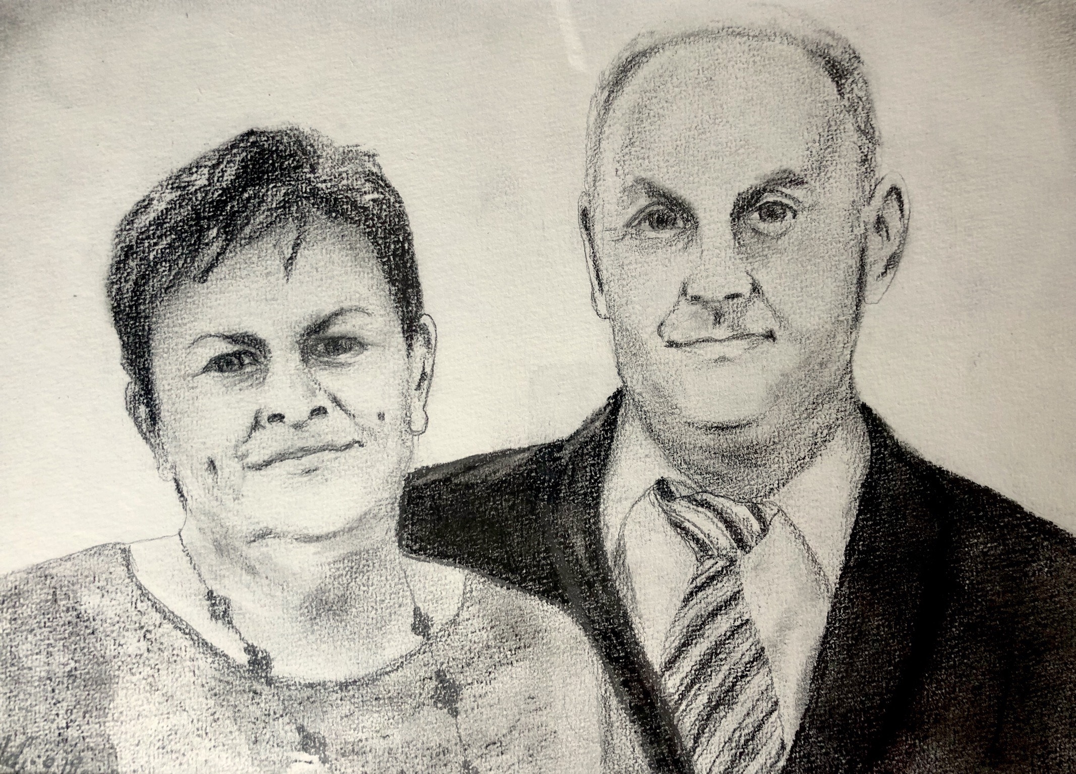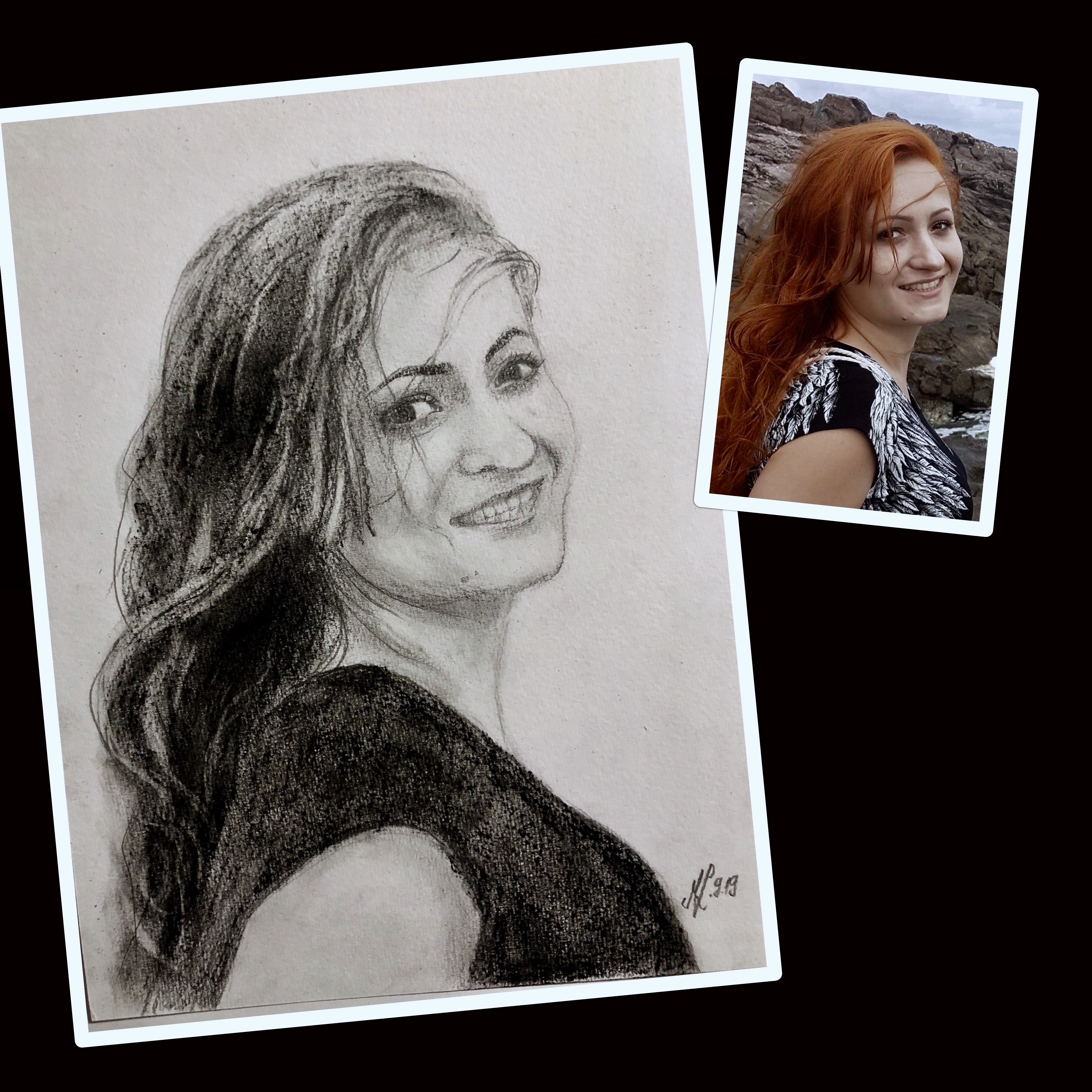 Rysunki ołówkiem, akwarele, portrety ze zdjęcia.